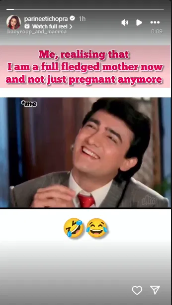 मां बनने के बाद परिणीति चोपड़ा ने इंस्टाग्राम स्टोरी पर एक बेहद फनी रिएक्शन शेयर किया, जिसने फैंस को खूब हंसाया। उन्होंने आमिर खान की फिल्म ‘अंदाज अपना अपना’ का एक सीन पोस्ट किया, जिसमें आमिर पहले जोर-जोर से हंसते हैं और फिर अचानक रोने लगते हैं। वीडियो के आखिर में एक डायलॉग सुनाई देता है- ‘खत्म, टाटा बाय-बाय।’ परिणीति ने इसी क्लिप पर लिखा- ‘जब एहसास हुआ कि अब मैं पूरी तरह मम्मी बन चुकी हूं और सिर्फ प्रेग्नेंट नहीं हूं।’ इसके साथ उन्होंने दो हंसते हुए इमोजी भी लगाए।